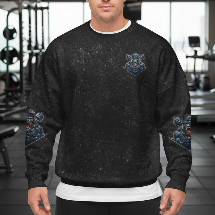Gorilla Hustle Muscle Men's Gym Sweatshirt, Workout Shirt, Oversized Crewneck Sweatshirt