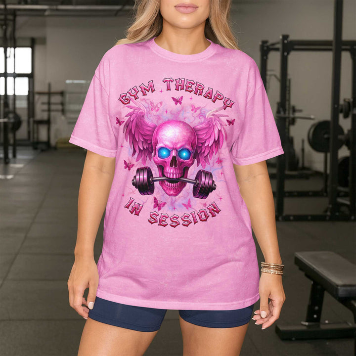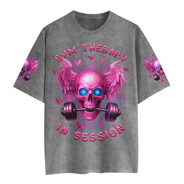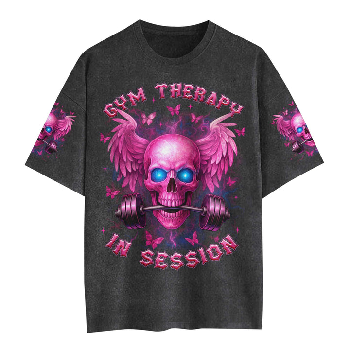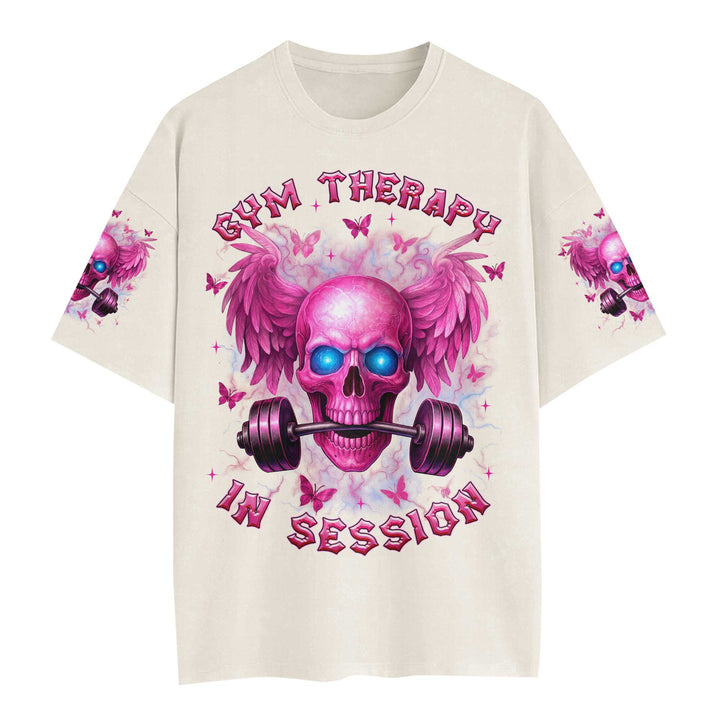 Gym Therapy In Session Women's Gym T-Shirt, Workout Shirt, Oversized Pump Cover Tee