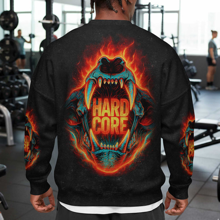 Hard Core Men's Gym Sweatshirt, Workout Shirt, Oversized Crewneck Sweatshirt