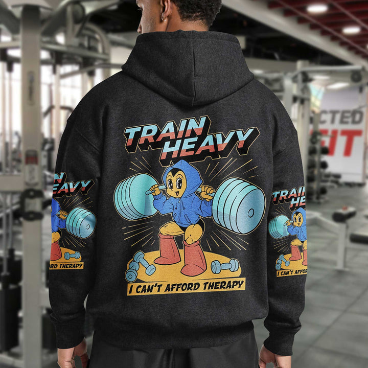 Train Heavy Men's Gym Hoodie, Workout Shirt, Oversized Pullover Hoodie