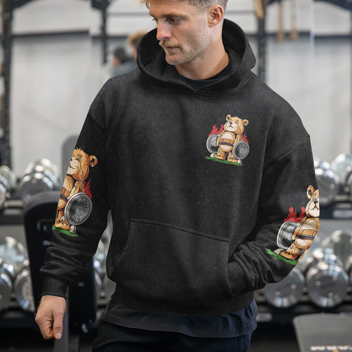Bear Deadlift Men's Gym Hoodie, Workout Shirt, Oversized Pullover Hoodie