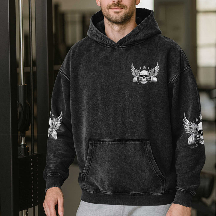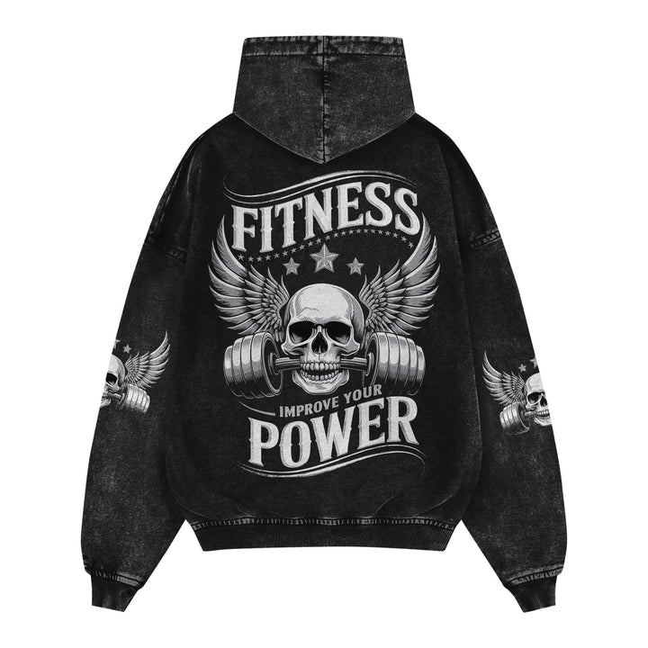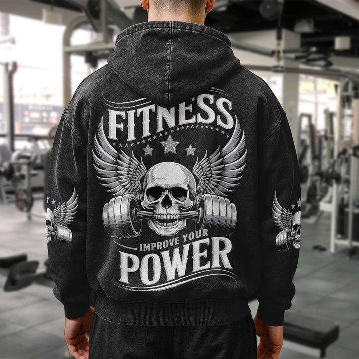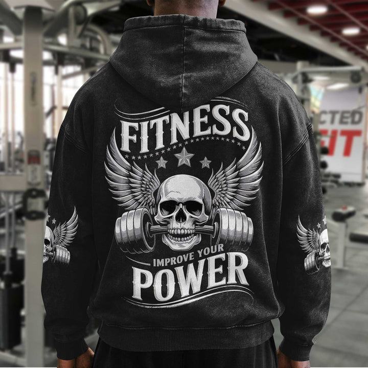 Fitness Improve Your Power Skull Men's Gym Hoodie, Workout Shirt, Oversized Pullover Hoodie