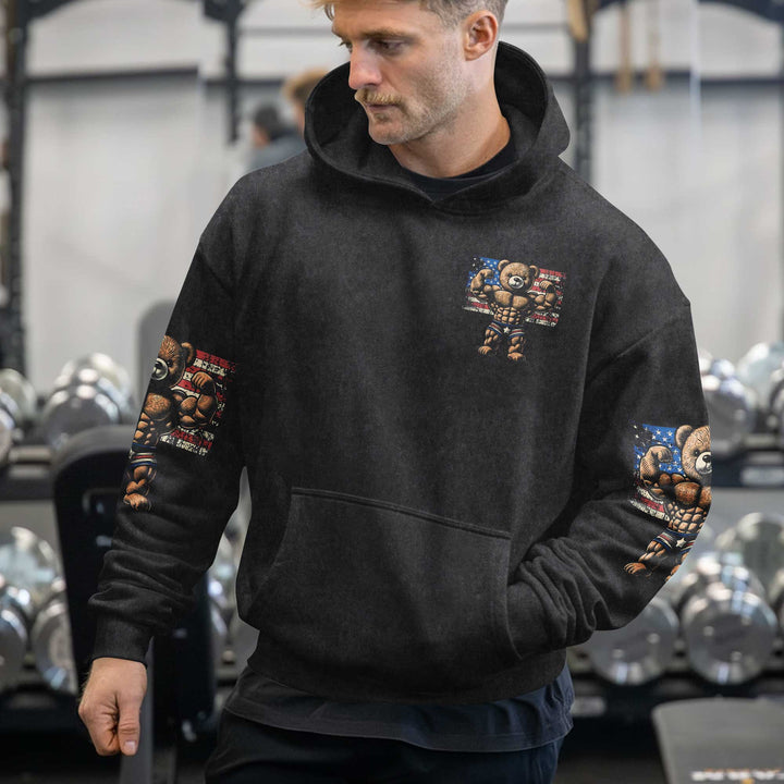 Bear Bodybuider Men's Gym Hoodie, Workout Shirt, Oversized Pullover Hoodie