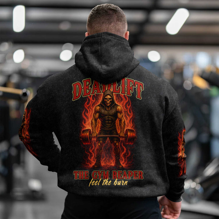 Deadlift The Gym Reaper Men's Gym Hoodie, Workout Shirt, Oversized Pullover Hoodie