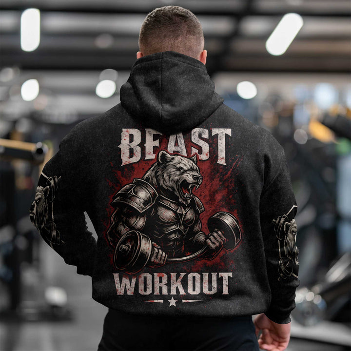 Beast Workout Men's Gym Hoodie, Workout Shirt, Oversized Pullover Hoodie