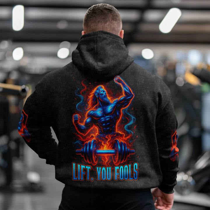 Lift You Fools Men's Gym Hoodie, Workout Shirt, Oversized Pullover Hoodie