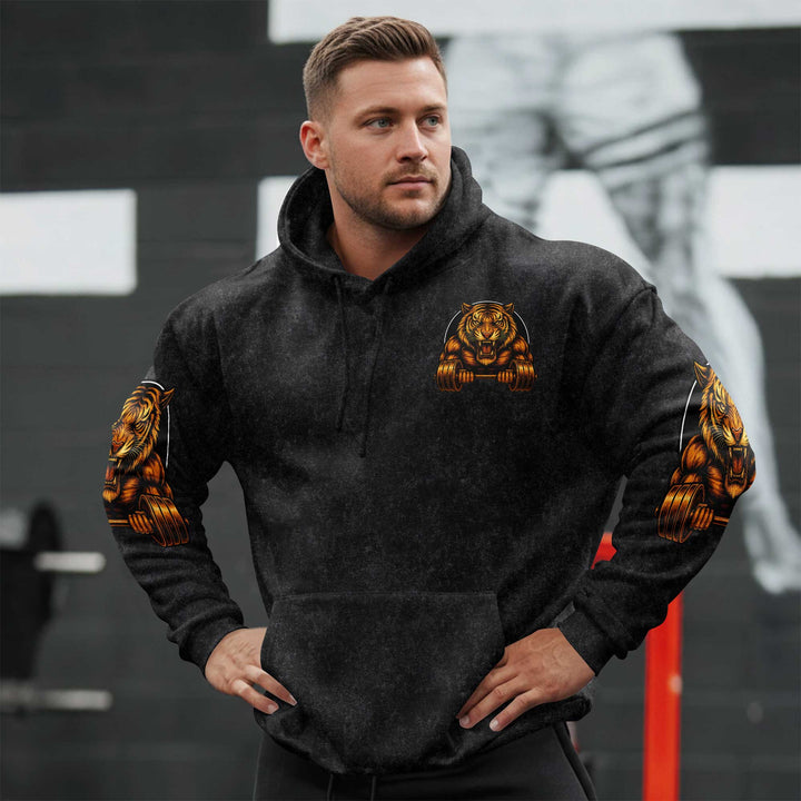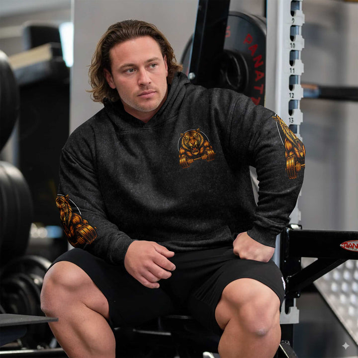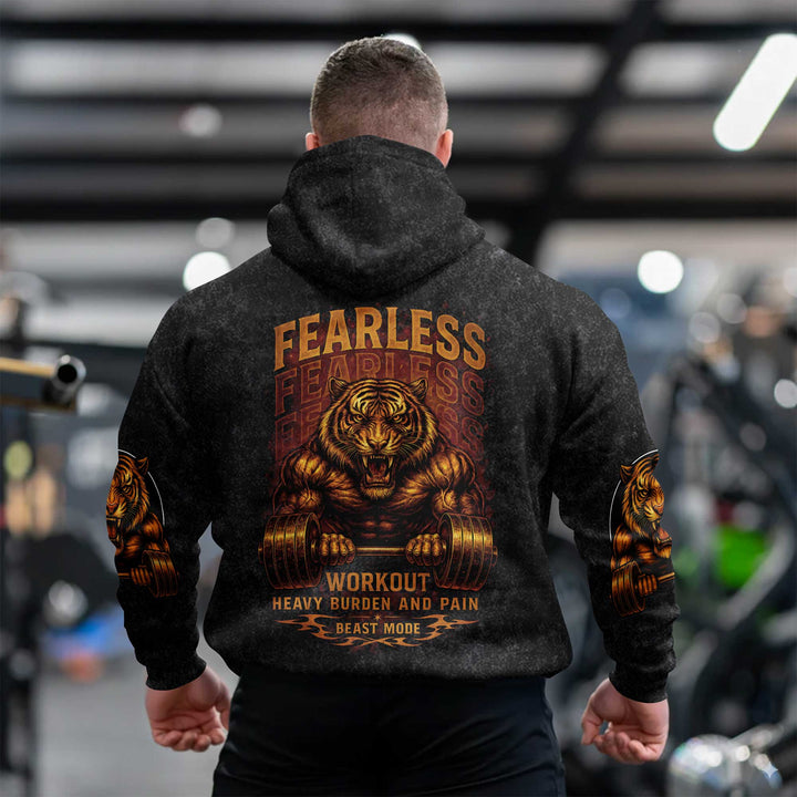 Fearless Tiger Men's Gym Hoodie, Workout Shirt, Oversized Pullover Hoodie
