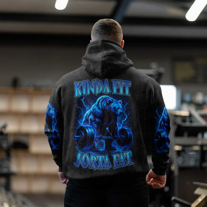Kinda Fit Sorta Fat Men's Gym Hoodie, Workout Shirt, Oversized Pullover Hoodie