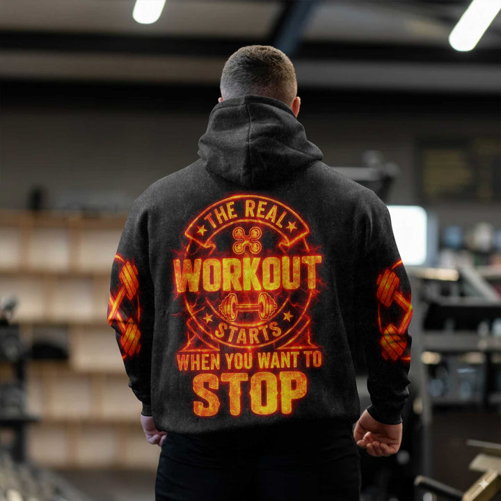The Real Workout Men's Gym Hoodie, Workout Shirt, Oversized Pullover Hoodie