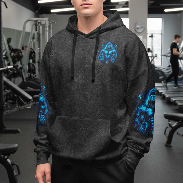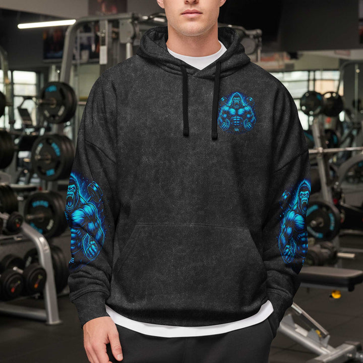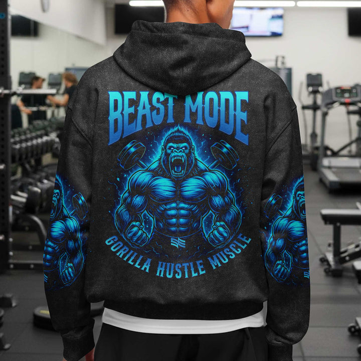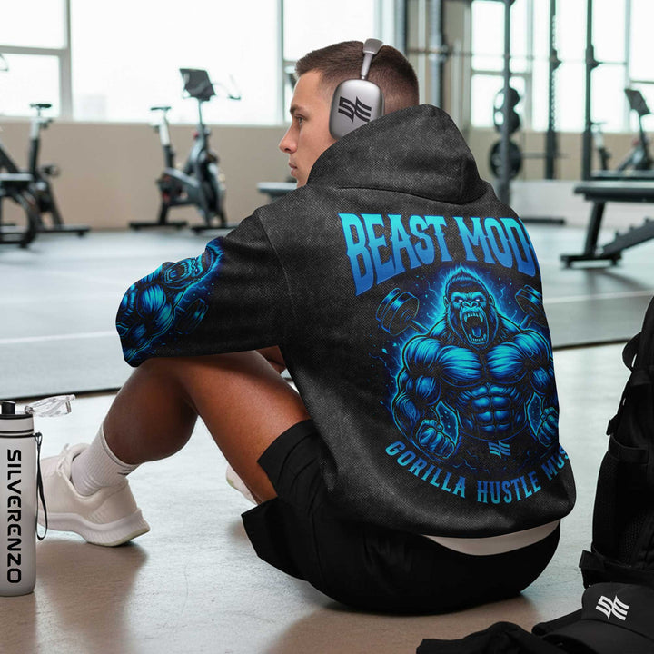 Beast Mode Gorilla Men's Gym Hoodie, Workout Shirt, Oversized Pullover Hoodie