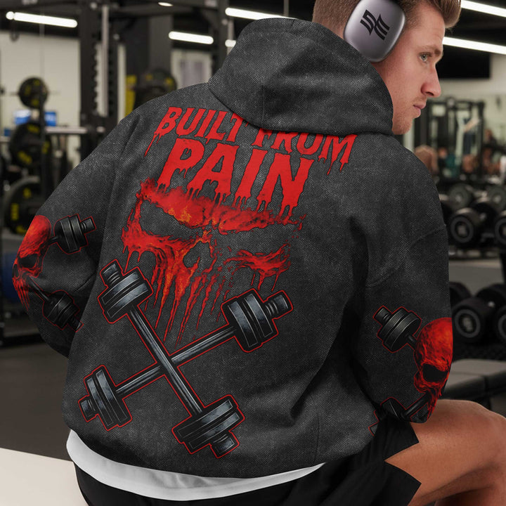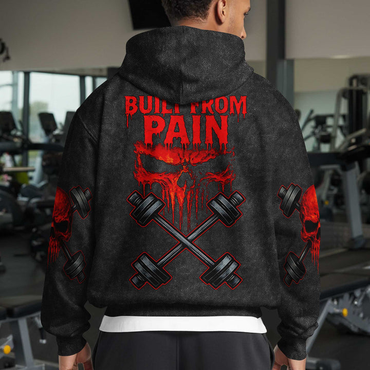 Built From Pain Men's Gym Hoodie, Workout Shirt, Oversized Pullover Hoodie