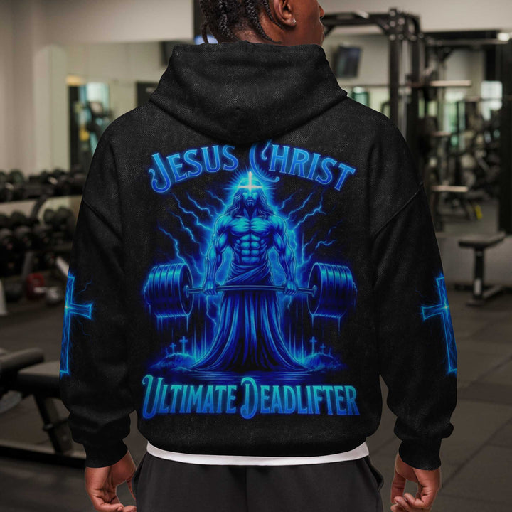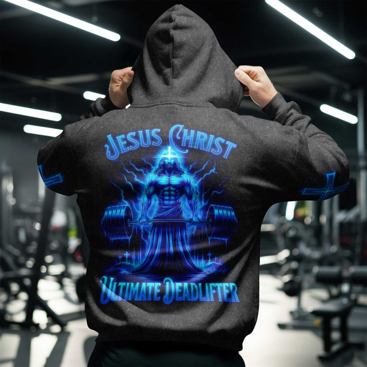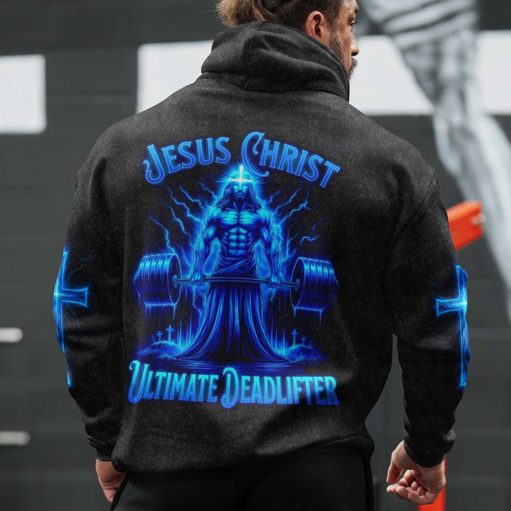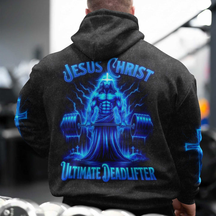 Jesus Christ Ultimate Deadlifter Men's Gym Hoodie, Workout Shirt, Oversized Pullover Hoodie