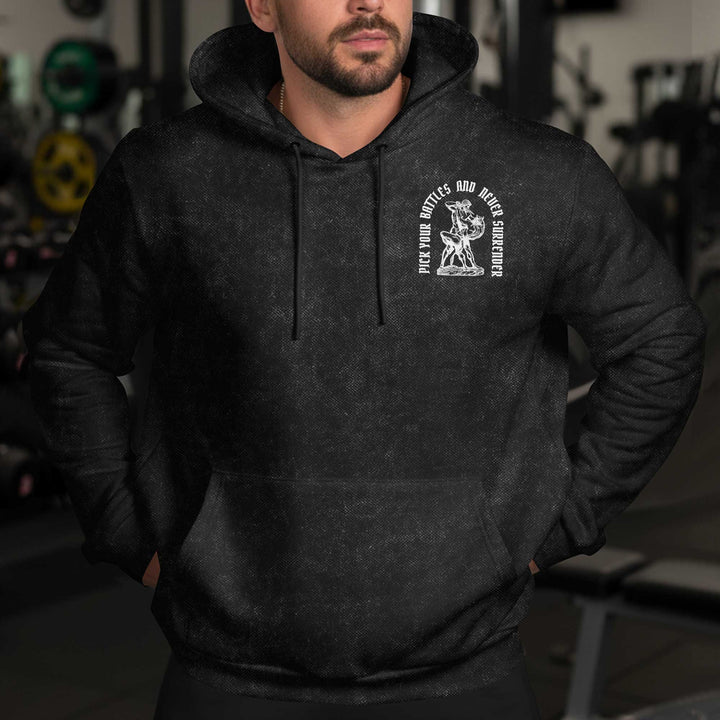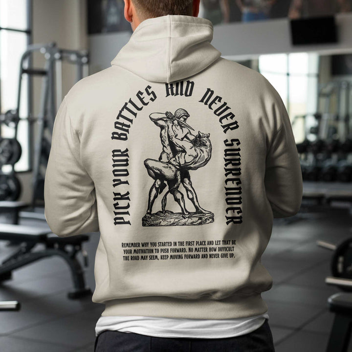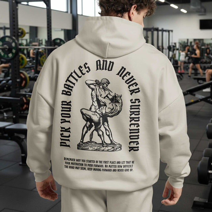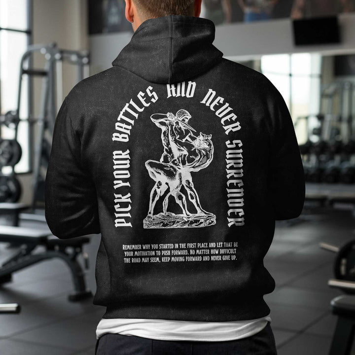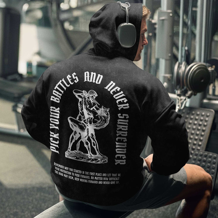 Pick Your Battles And Never Surrender Men's Gym Hoodie, Workout Shirt, Oversized Pullover Hoodie