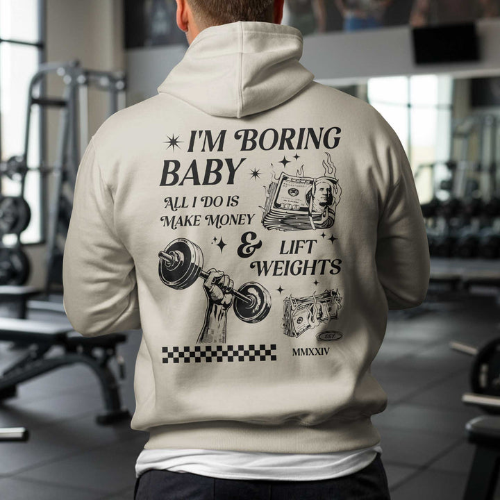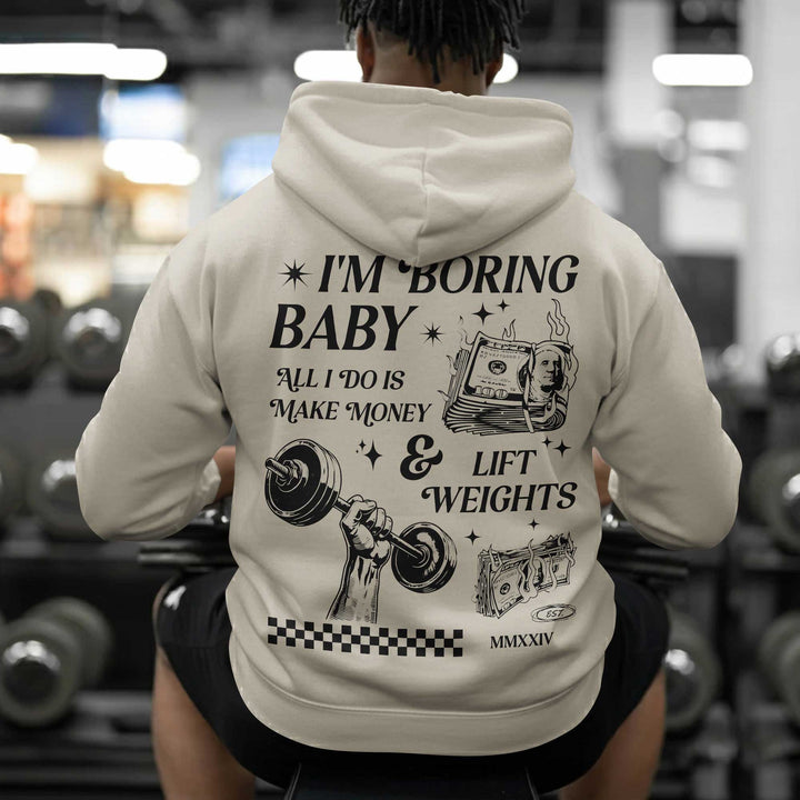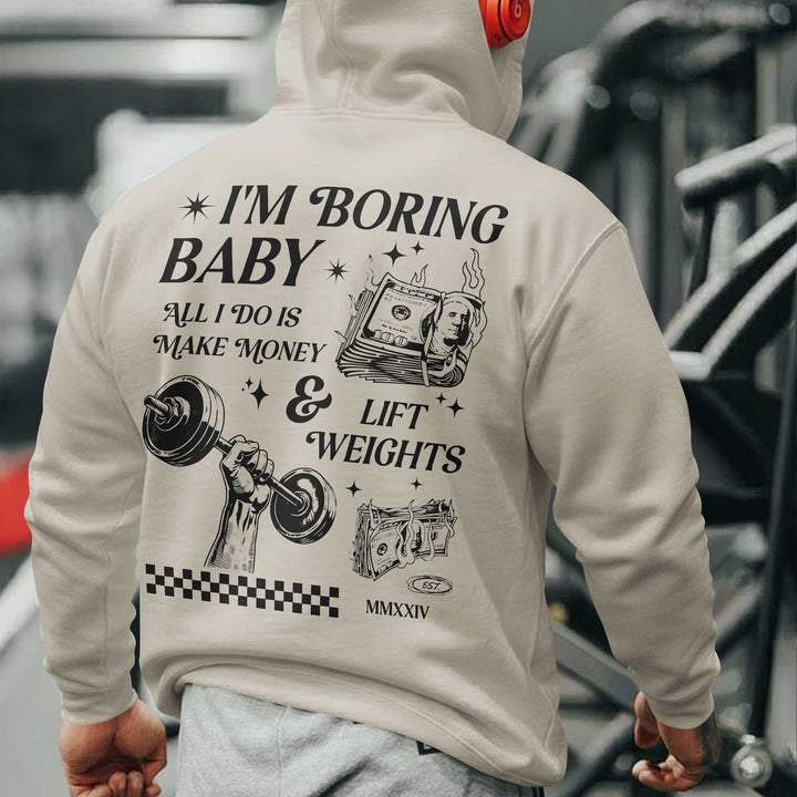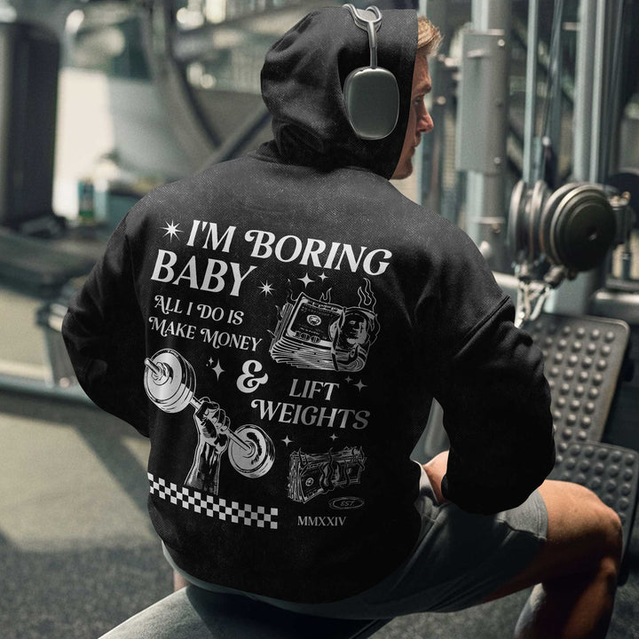 I'm Boring Baby Men's Gym Hoodie, Workout Shirt, Oversized Pullover Hoodie