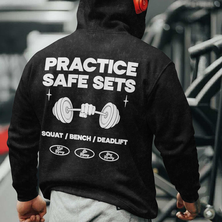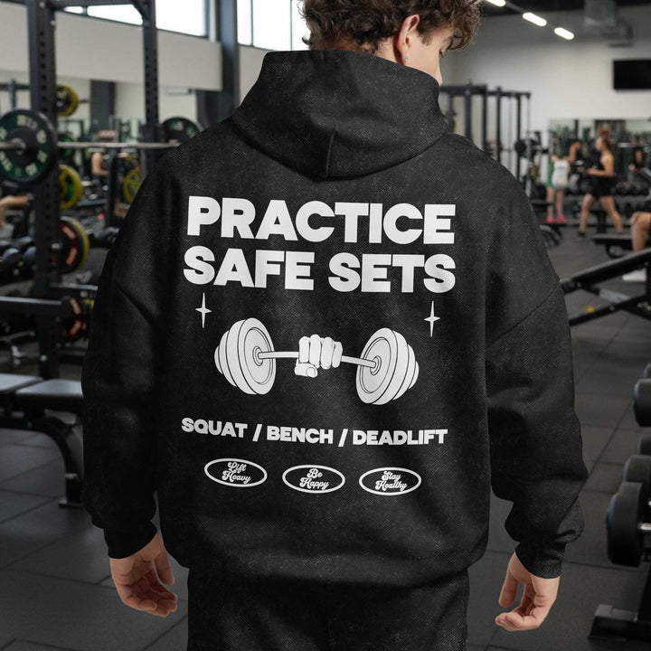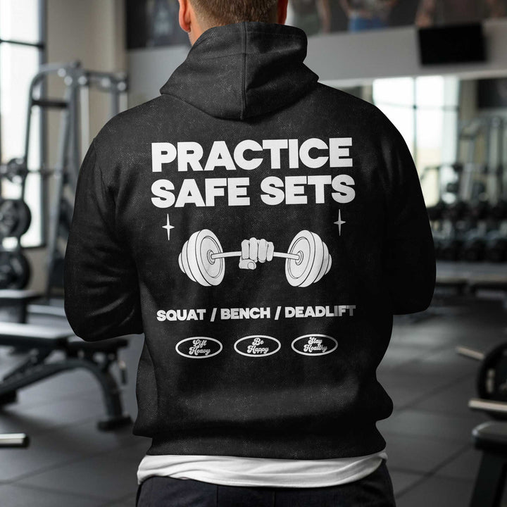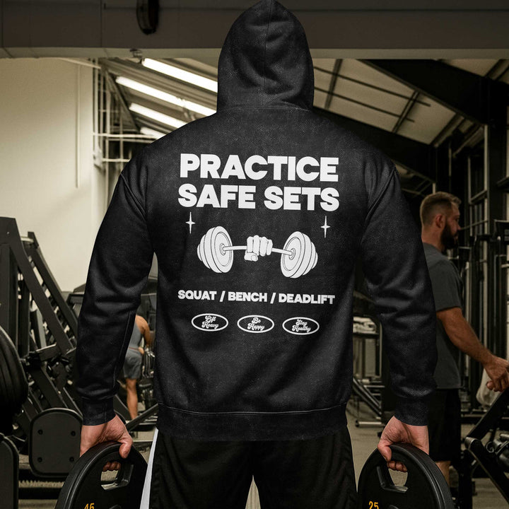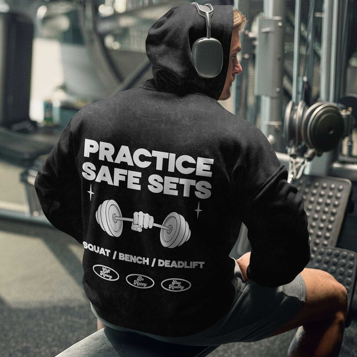 Practice Safe Sets Men's Gym Hoodie, Workout Shirt, Oversized Pullover Hoodie