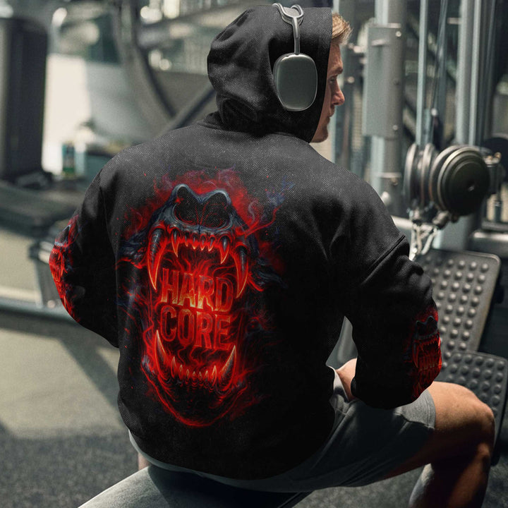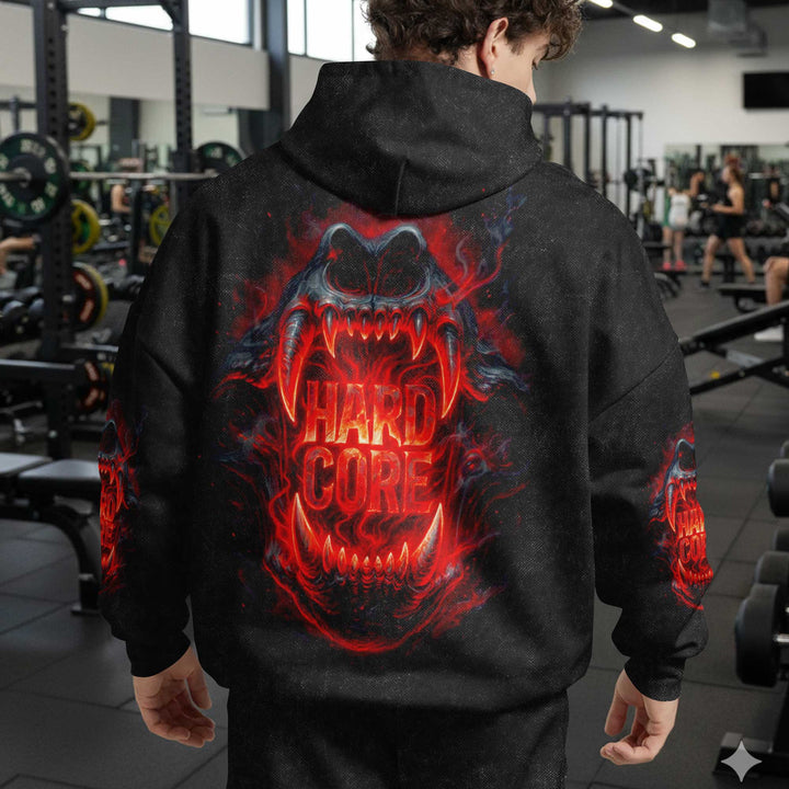 Hard Core Men's Gym Hoodie, Workout Shirt, Oversized Pullover Hoodie