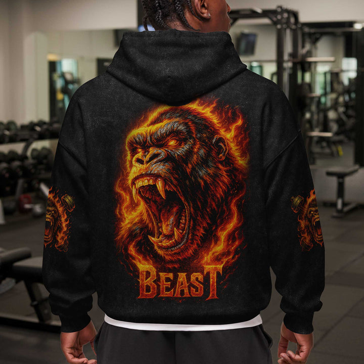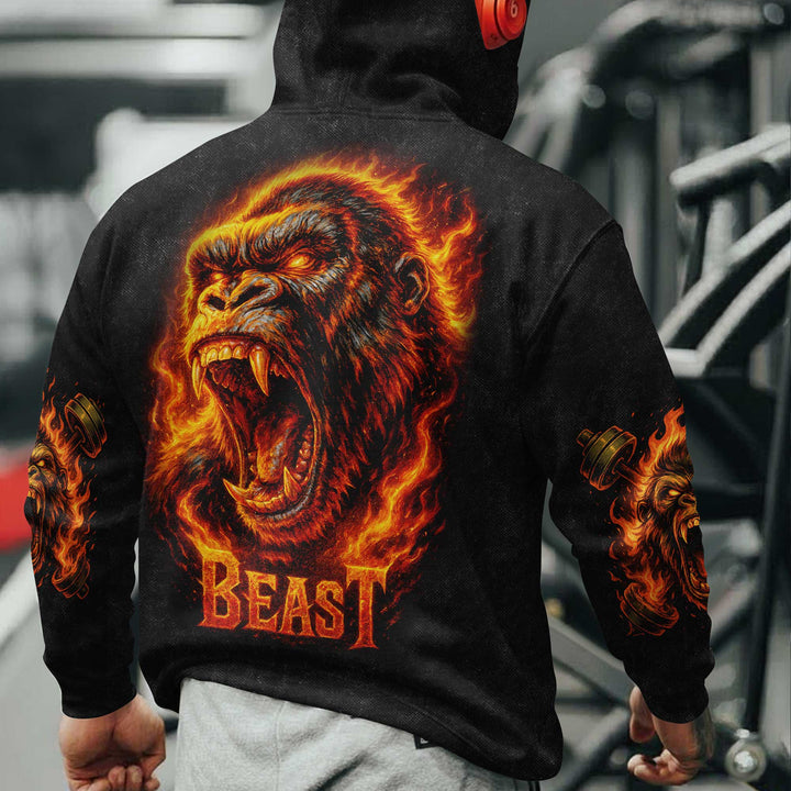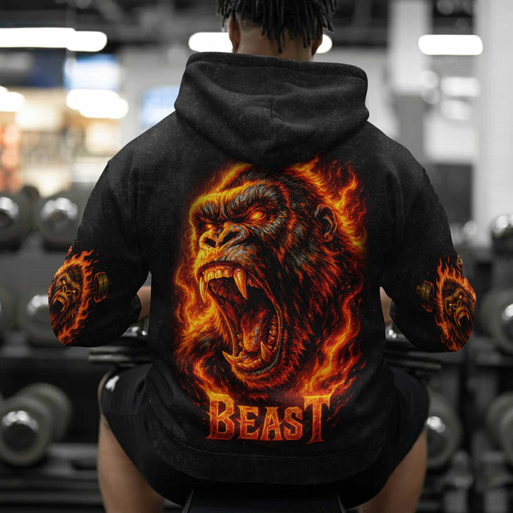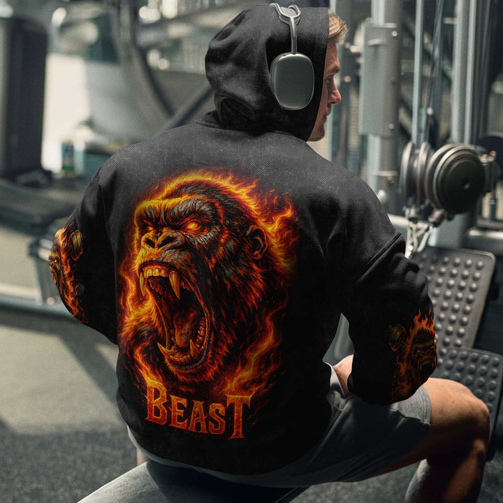 Beast Men's Gym Hoodie, Workout Shirt, Oversized Pullover Hoodie