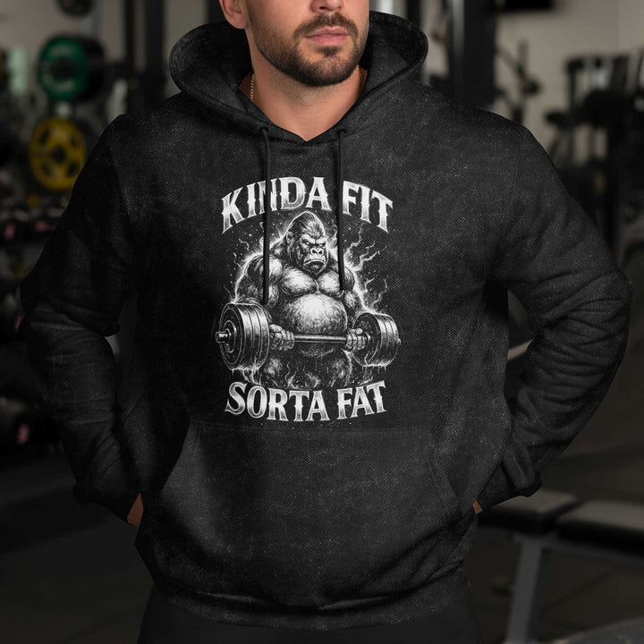 Kinda Fit Sorta Fat Men's Gym Hoodie, Workout Shirt, Oversized Pullover Hoodie