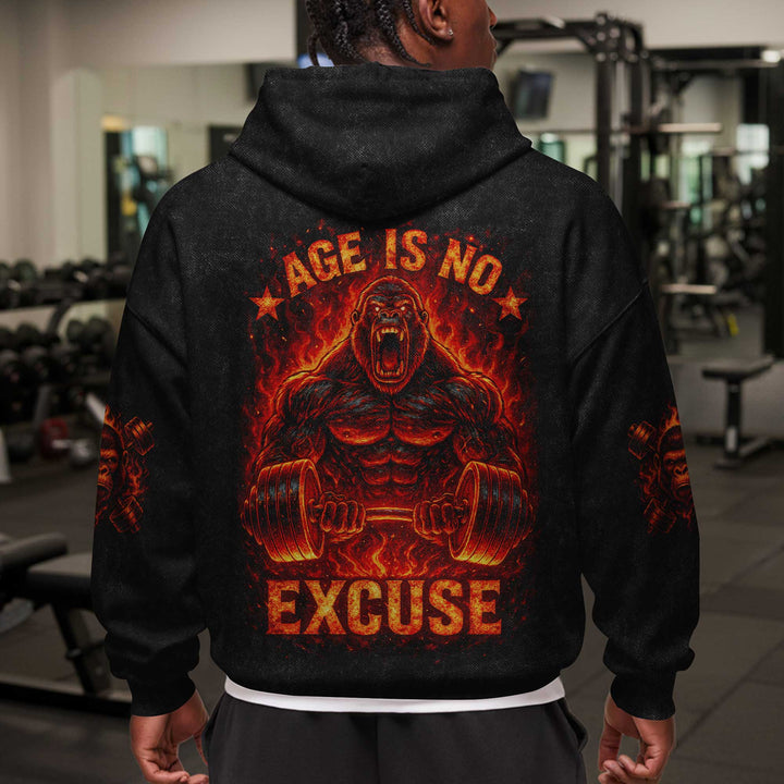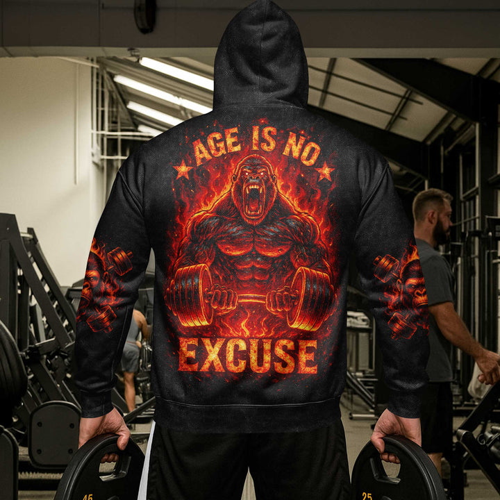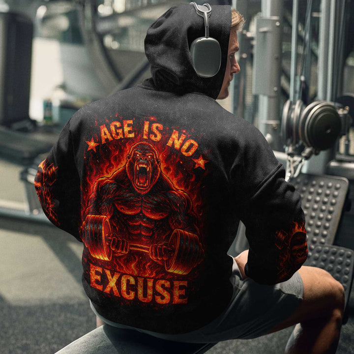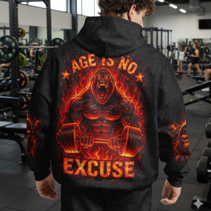 Age Is No Excuse Men's Gym Hoodie, Workout Shirt, Oversized Pullover Hoodie