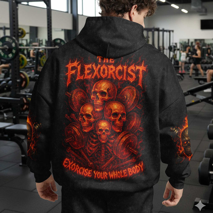 The Flexorcist Men's Gym Hoodie, Workout Shirt, Oversized Pullover Hoodie