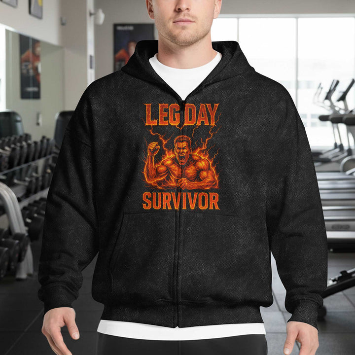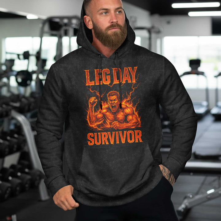 Leg Day Survivor Men's Gym Hoodie, Workout Shirt, Oversized Pullover Hoodie