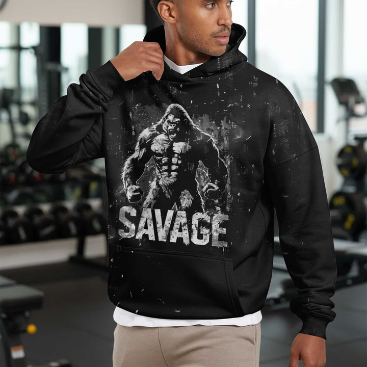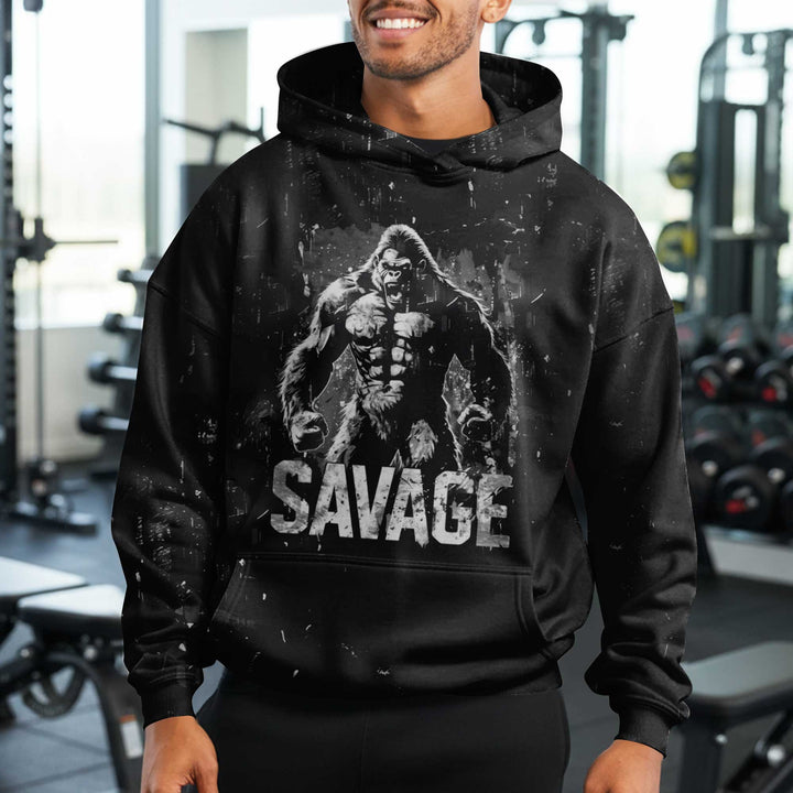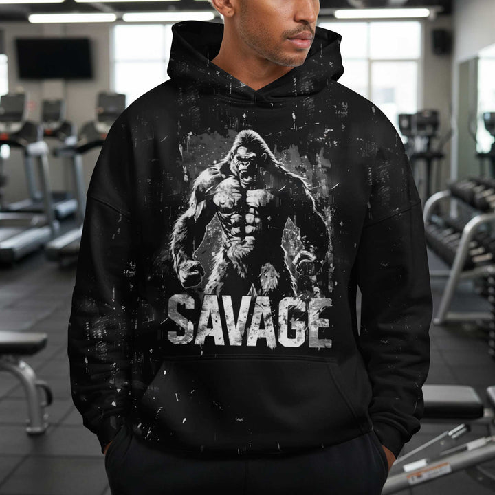 Savage Men's Gym Hoodie, Workout Shirt, Oversized Pullover Hoodie
