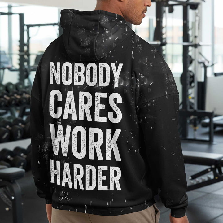 Nobody Cares Work Harder Men's Gym Hoodie, Workout Shirt, Oversized Pullover Hoodie