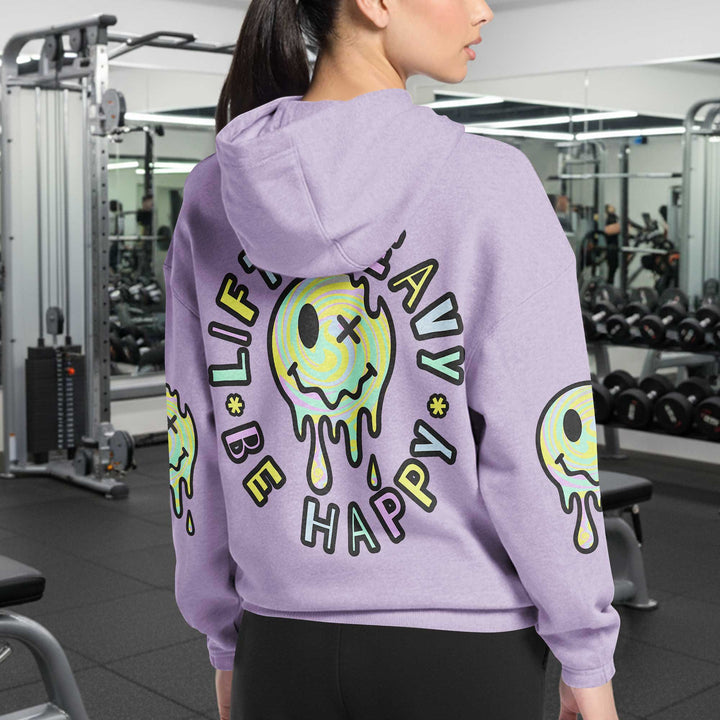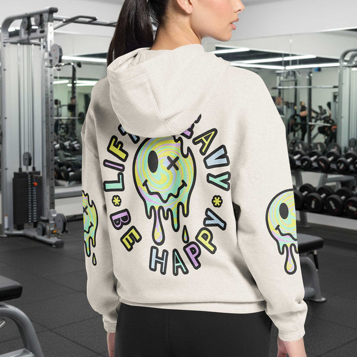 Lift Heavy Be Happy Women's Gym Hoodie, Workout Shirt, Fitness Oversized Pullover Hoodie