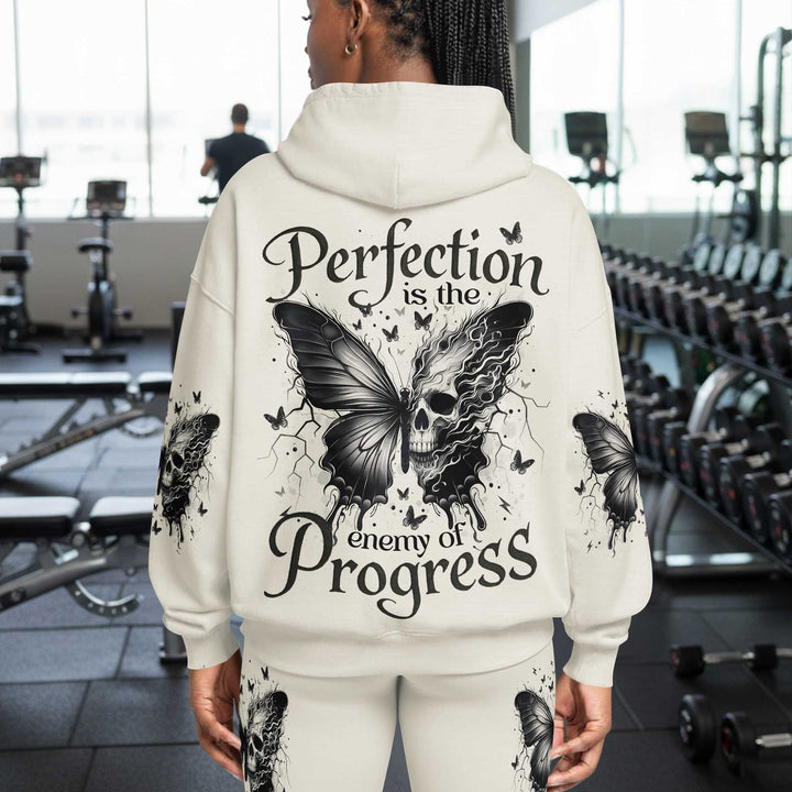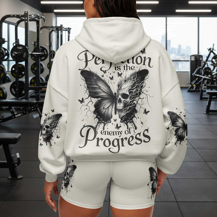 Perfection Is The Enemy Of Progress Women's Gym Hoodie, Workout Shirt, Fitness Oversized Pullover Hoodie