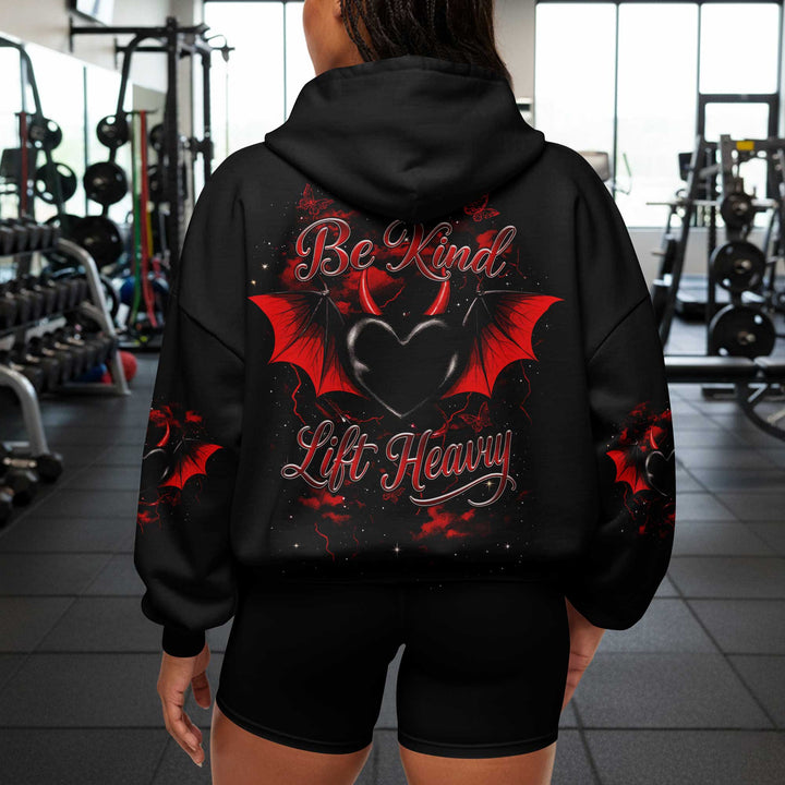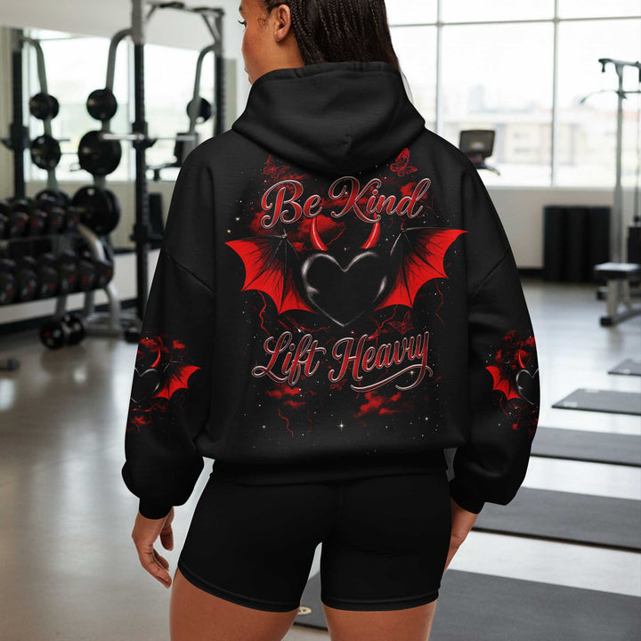Be Kind Lift Heavy Women's Gym Hoodie, Workout Shirt, Fitness Oversized Pullover Hoodie