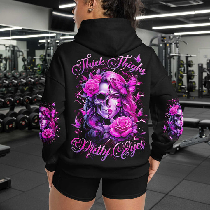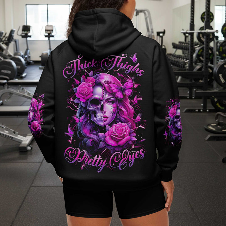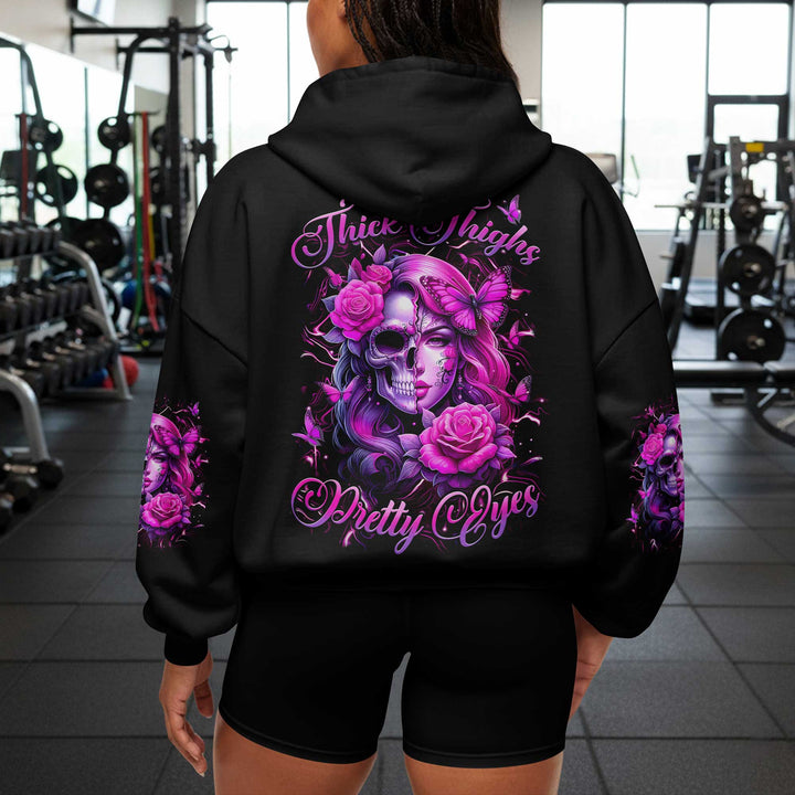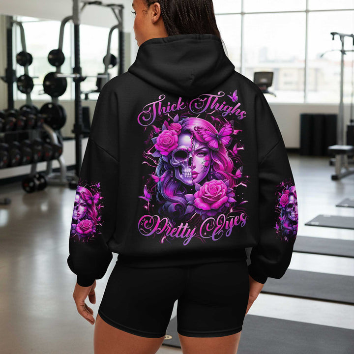 Thick Thighs Pretty Eyes Women's Gym Hoodie, Workout Shirt, Fitness Oversized Pullover Hoodie