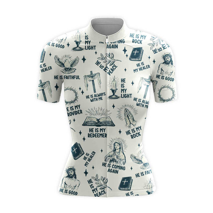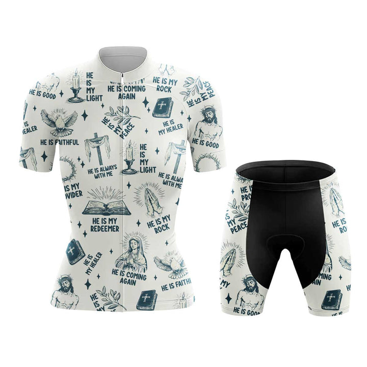 He Is God Women's Cycling Jersey Set, Road Bike Cycling Kit for Women, Biking Outfit, Bicycle Suit, Team Racing Uniform