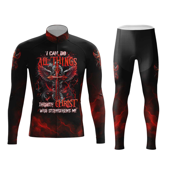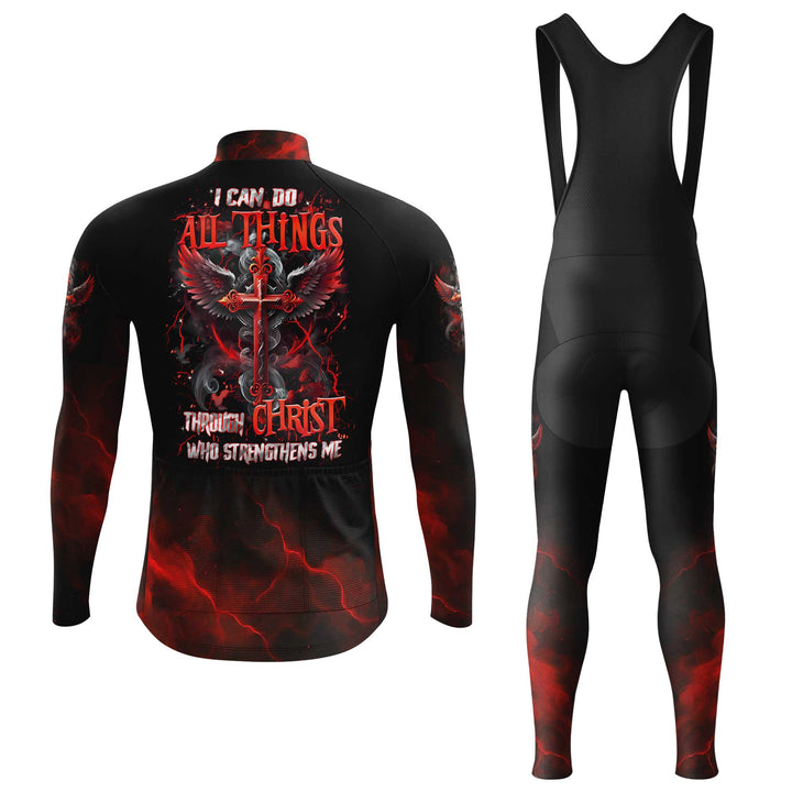 I Can Do All Things Through Christ Men's Cycling Jersey Set, Road Bike Cycling Kit for Men, Biking Outfit, Bicycle Suit, Team Racing Uniform