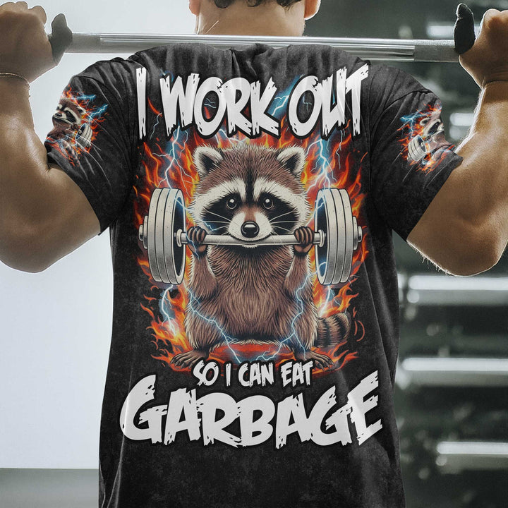 I Workout Racoon Men's Gym T-Shirt, Workout Shirt, Oversized Pump Cover Tee