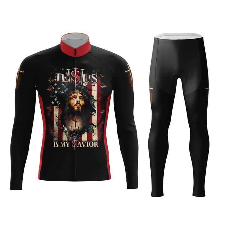 Jesus Is My Savior Men's Cycling Jersey Set, Road Bike Cycling Kit for Men, Biking Outfit, Bicycle Suit, Team Racing Uniform
