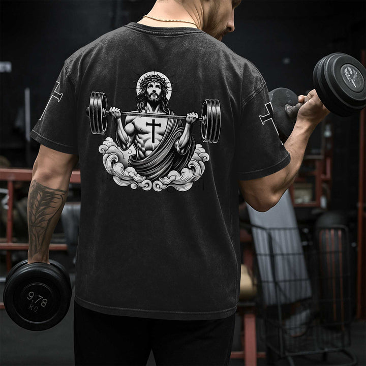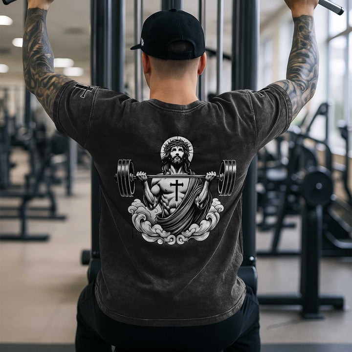 Jesus Lifting Men's Gym T-Shirt, Workout Shirt, Oversized Pump Cover Tee
