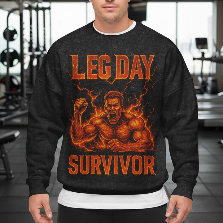 Leg Day Survivor Men's Gym Sweatshirt, Workout Shirt, Oversized Crewneck Sweatshirt