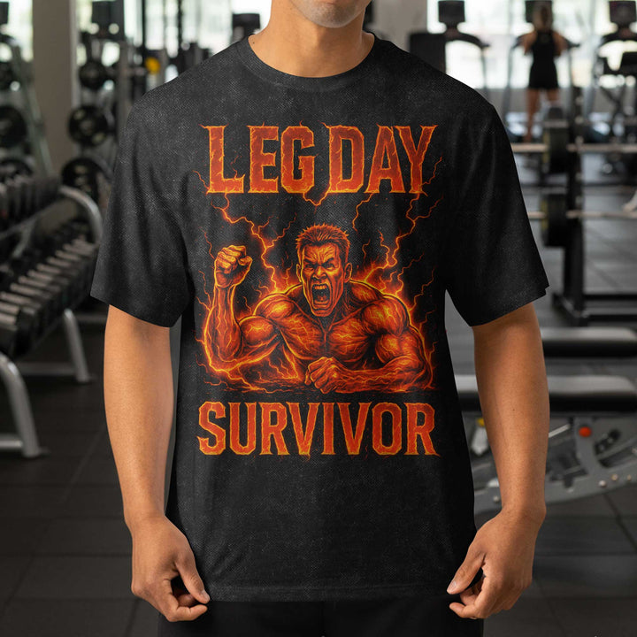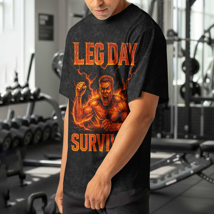 Leg Day Survivor Men's Gym T-Shirt, Workout Shirt, Oversized Pump Cover Tee
