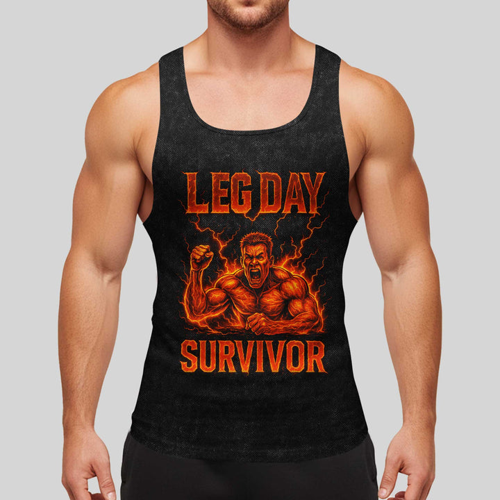 Leg Day Survivor Men's Gym Tank Top, Workout Tank, Oversized Tank