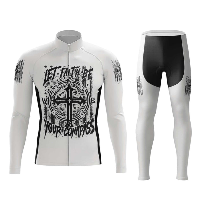 Let Faith Be Your Compass Men's Cycling Jersey Set, Road Bike Cycling Kit for Men, Biking Outfit, Bicycle Suit, Team Racing Uniform