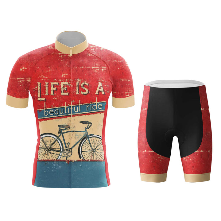 Life Is A Beautiful Ride Men's Cycling Jersey Set, Road Bike Cycling Kit for Men, Biking Outfit, Bicycle Suit, Team Racing Uniform