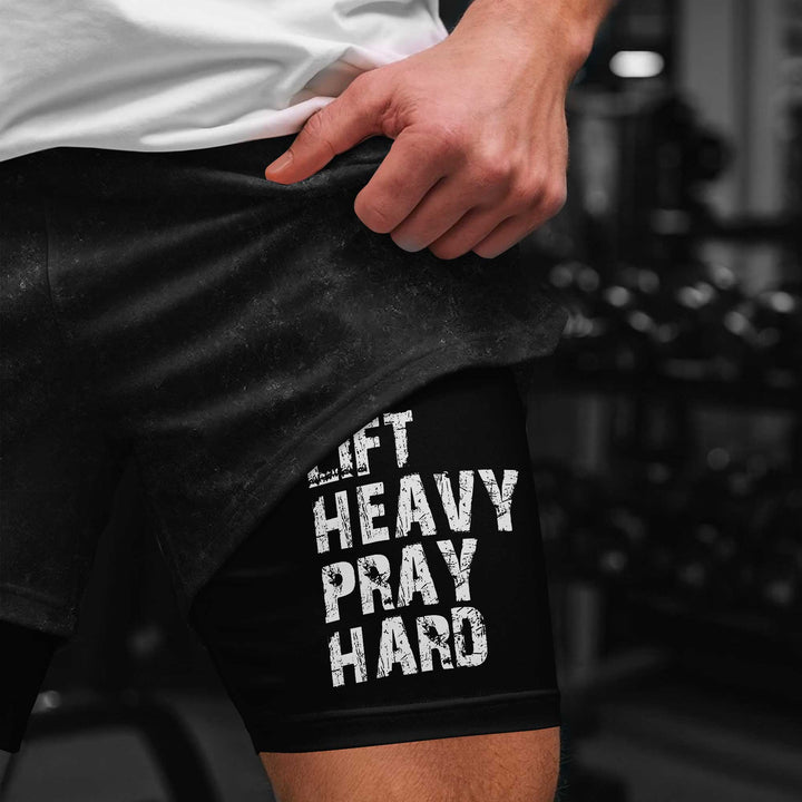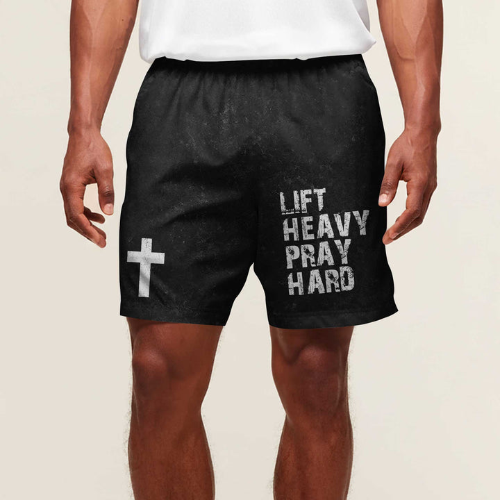 Lift Heavy Pray Hard Men's Gym Shorts, Workout Shorts, Performance Active Shorts