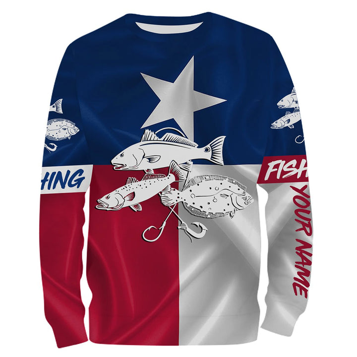 Fishing Redfish Trout Flounder Tattoo Texas Slam Personalized Men Women Long Sleeve Shirt Custom Fishing Apparel