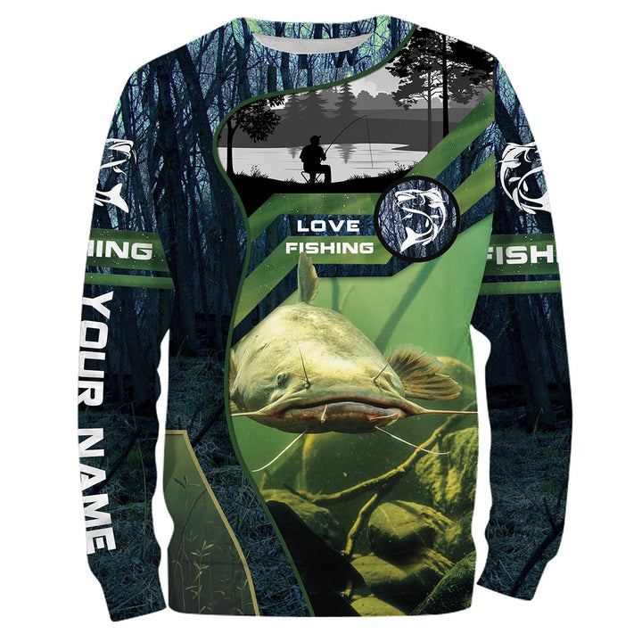 Flathead Catfish Personalized Men Women Long Sleeve Shirt Custom Fishing Apparel