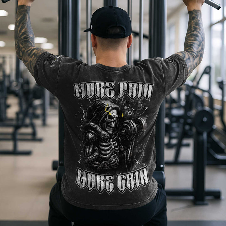 More Pain More Gain Men's Gym T-Shirt, Workout Shirt, Oversized Pump Cover Tee