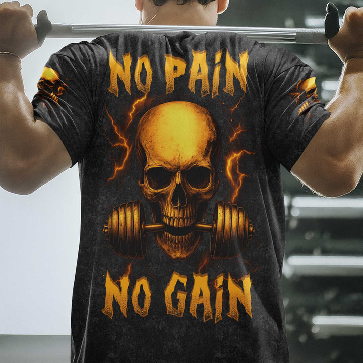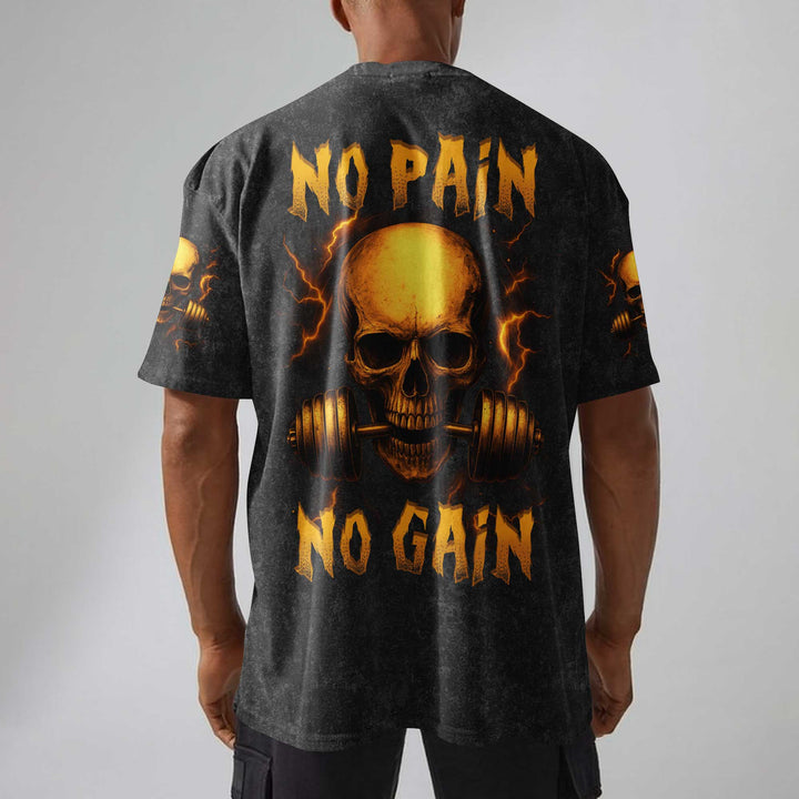 No Pain No Gain Skull Men's Gym T-Shirt, Workout Shirt, Oversized Pump Cover Tee