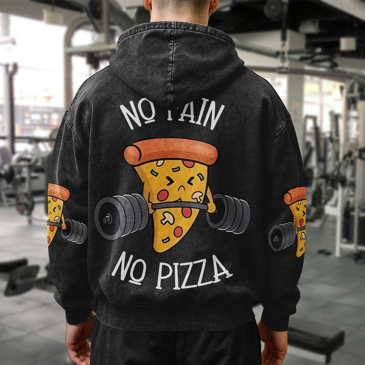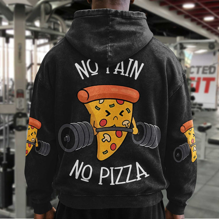 No Pain No Pizza Men's Gym Hoodie, Workout Shirt, Oversized Pullover Hoodie