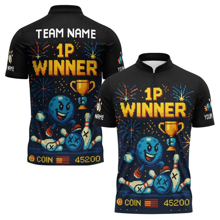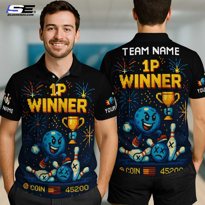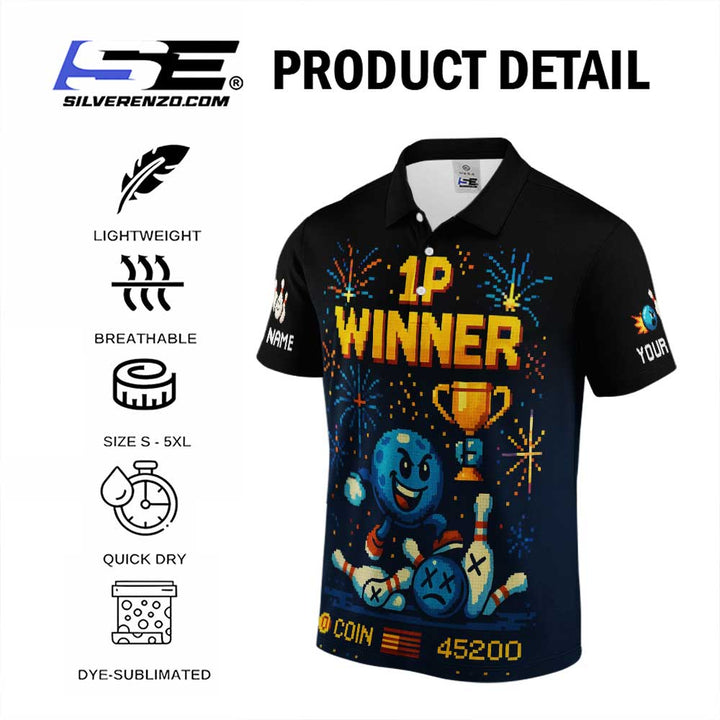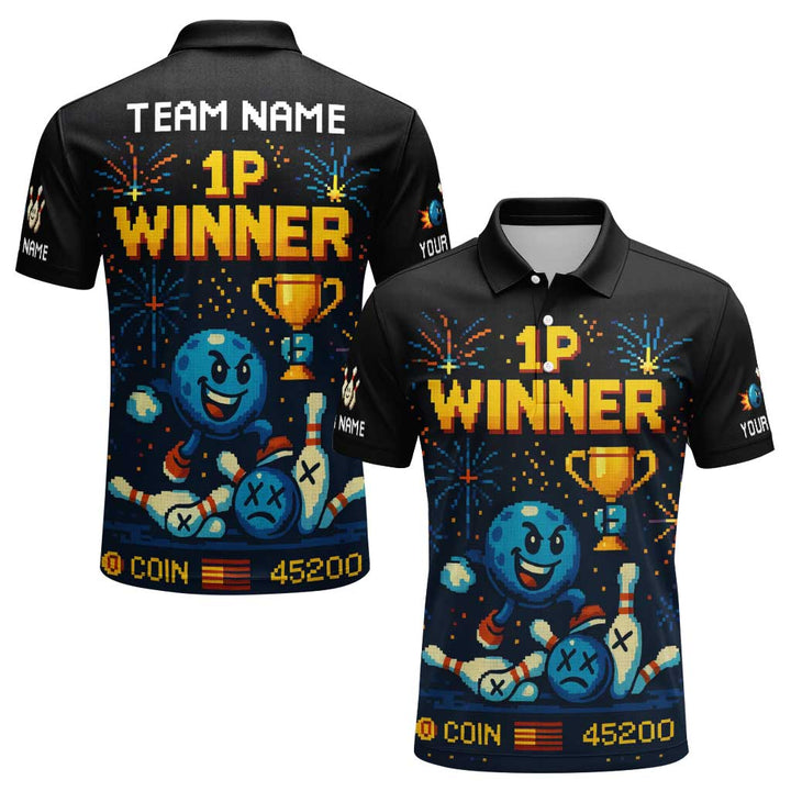 Personalized Bowling 1P Winner Men Women Performance Polo Shirt Custom Name Bowling Team Jersey