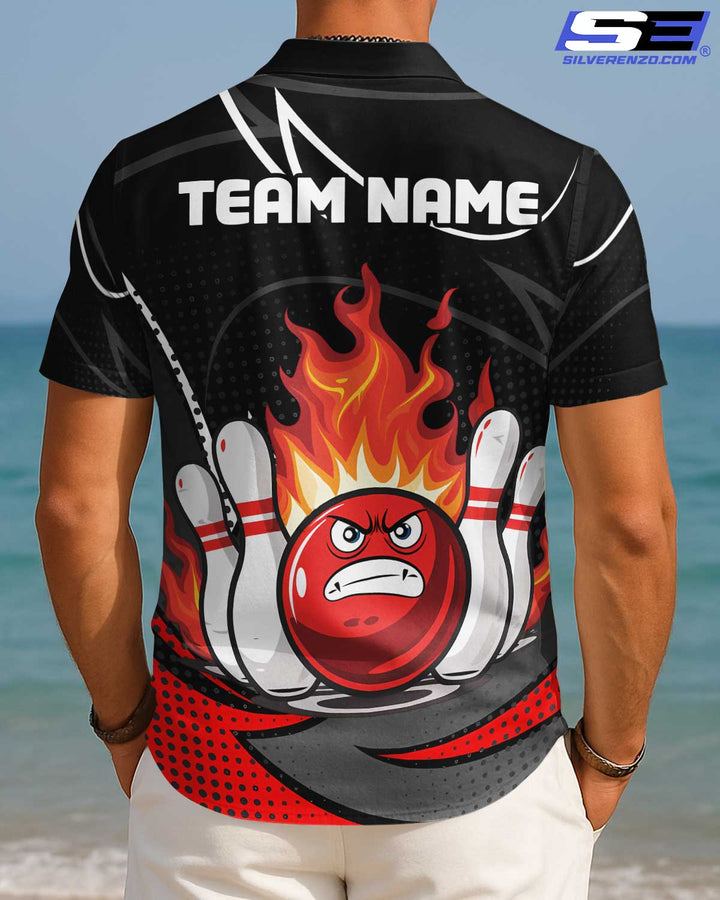 Personalized Bowling And Pins Flame Men Women Hawaiian Shirt Custom Name Bowling Team Jersey