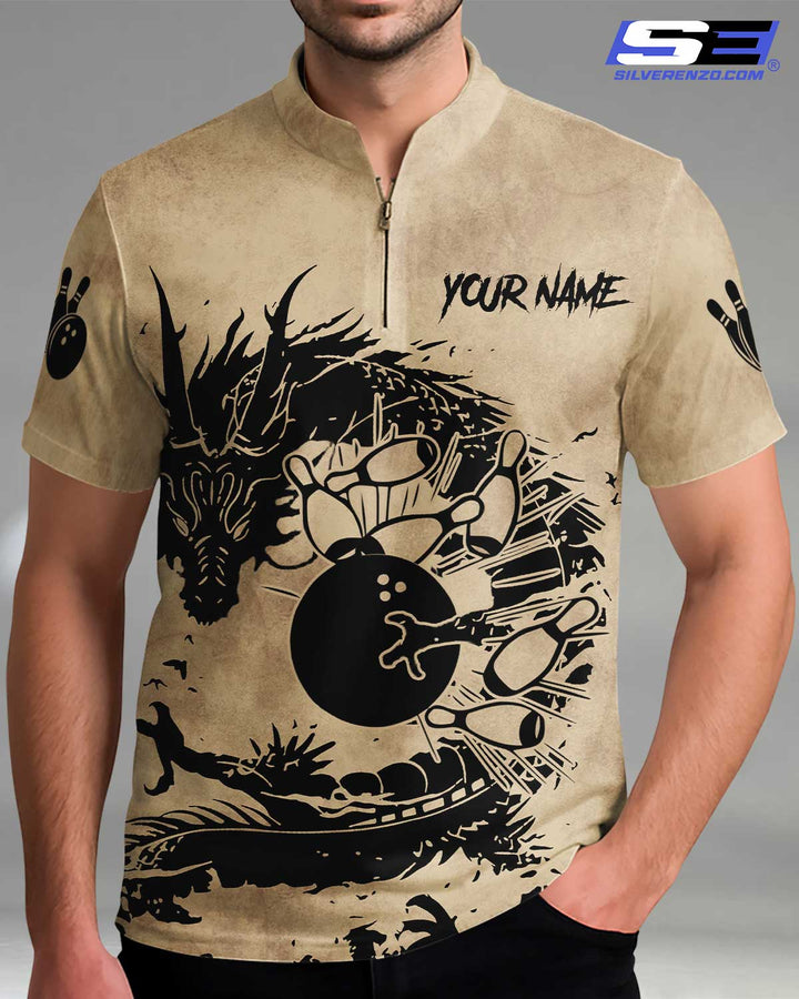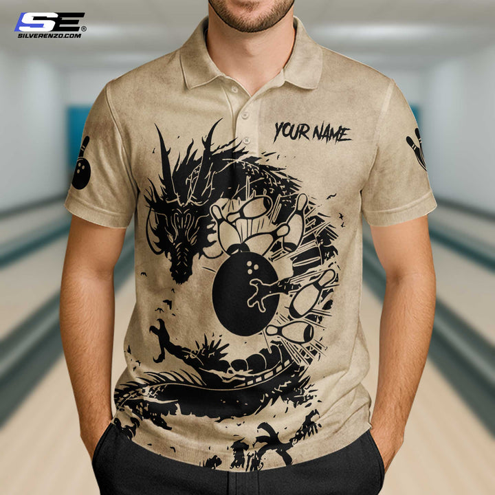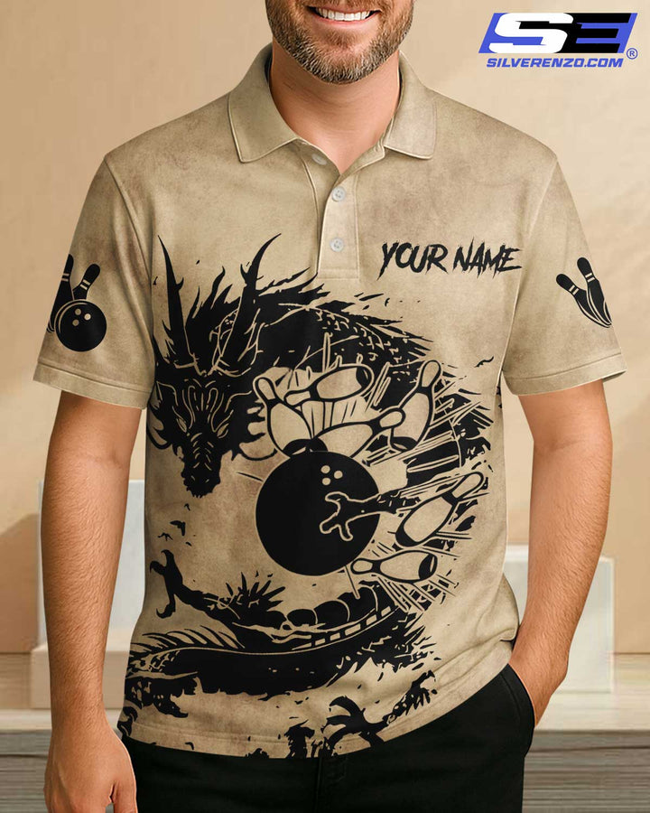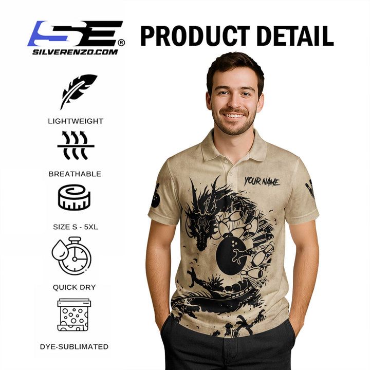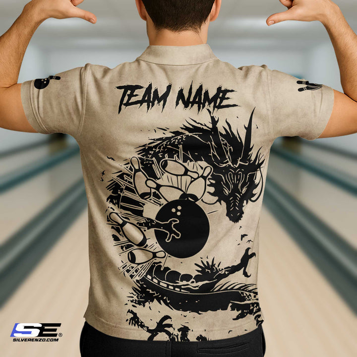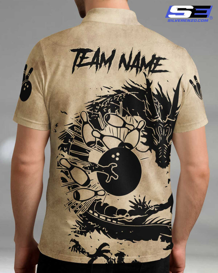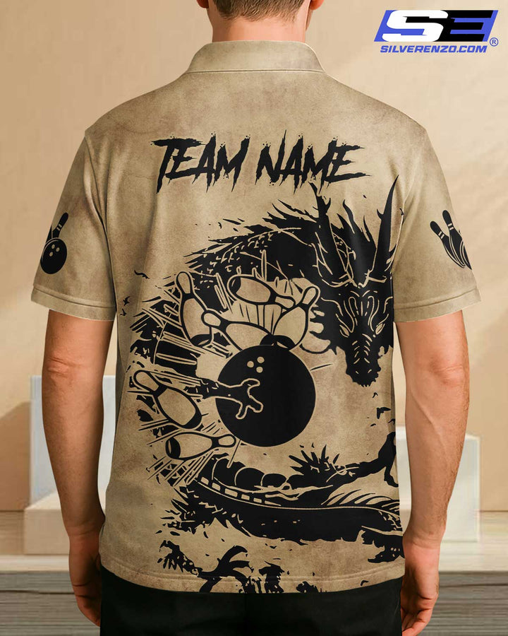 Personalized Bowling And Pins Dragon Men Women Polo Shirt Custom Name Bowling Team Jersey